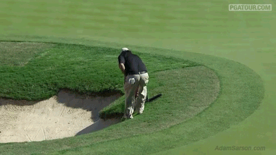 Ryan Palmer hit an absolutely terrible bunker shot on the 5th hole in Sunday’s final round, but he managed to get a pretty fortunate break: