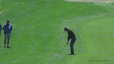 Secondly, Steven Bowditch does something here that I wouldn’t recommend anyone attempting, but when you have a bunker in the middle of a green, you have to improvise.
