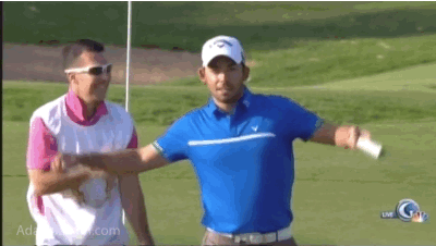 Pablo Larrazabal finally makes a birdie and then tells his caddie to go get his bag.