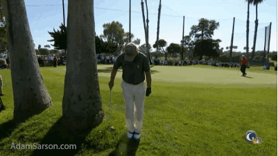 Robert Garrigus doing his best Tiger Woods impression.