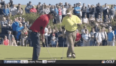 Mo Martin dances in the fairway after nearly holing out for a two.