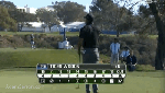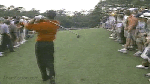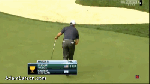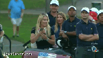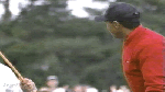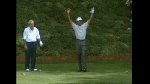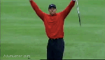 - Tiger reacts to a fairway holeout.